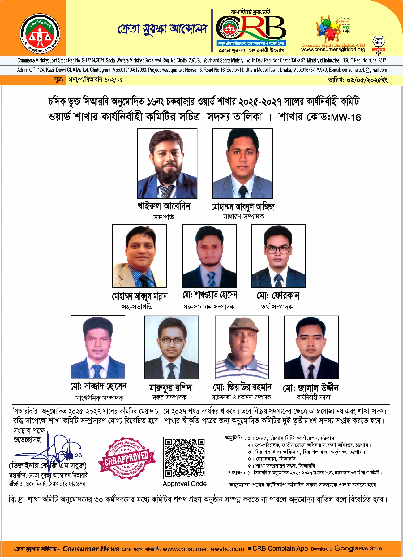 মেয়াদকাল : ০৬ মে ২০২৫ইং থেকে ৮ মে ২০২৭ইং
