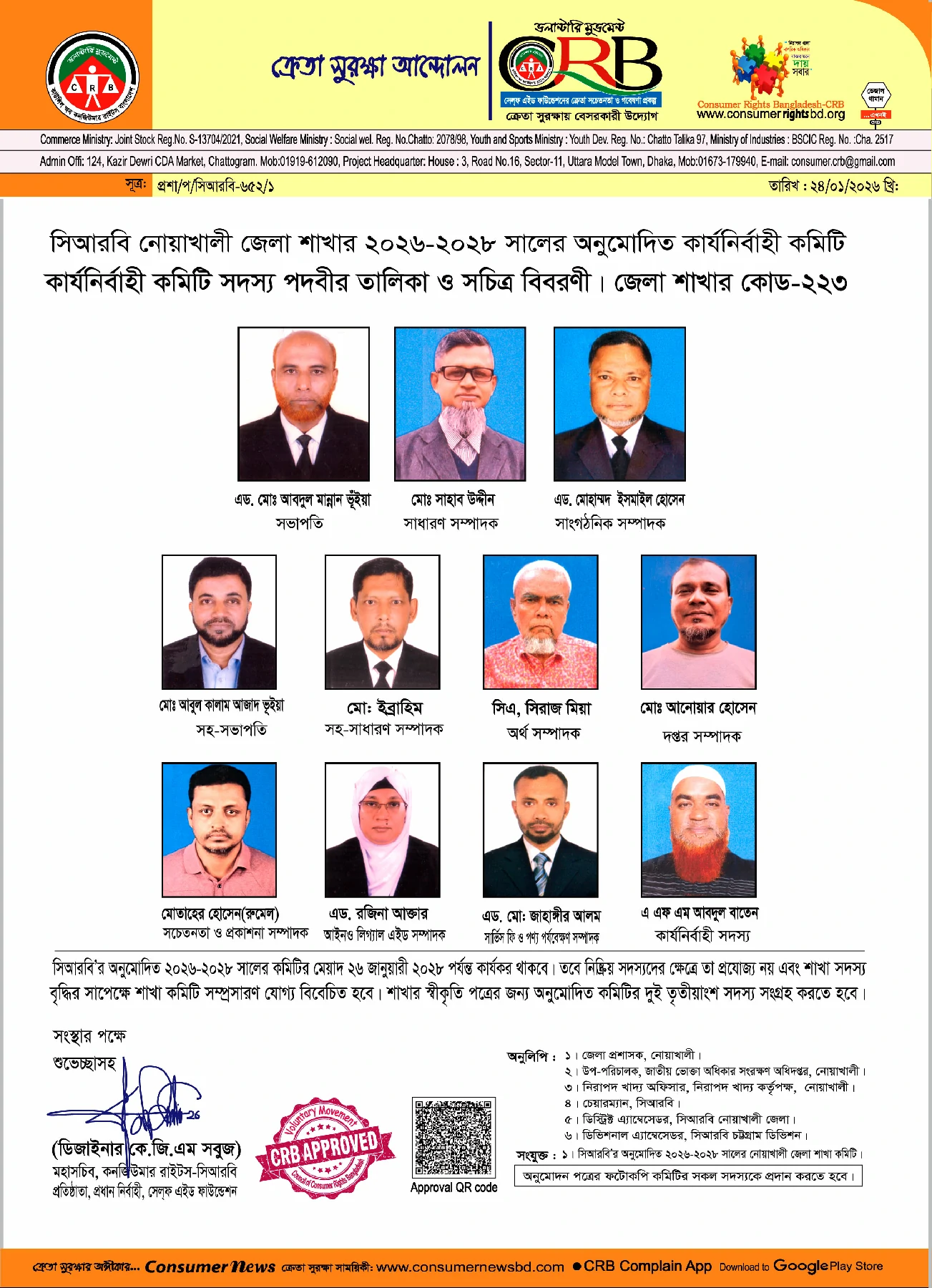 সিআরবি অনুমোদিত নোয়াখালী জেলা শাখা কমিটির তথ্য