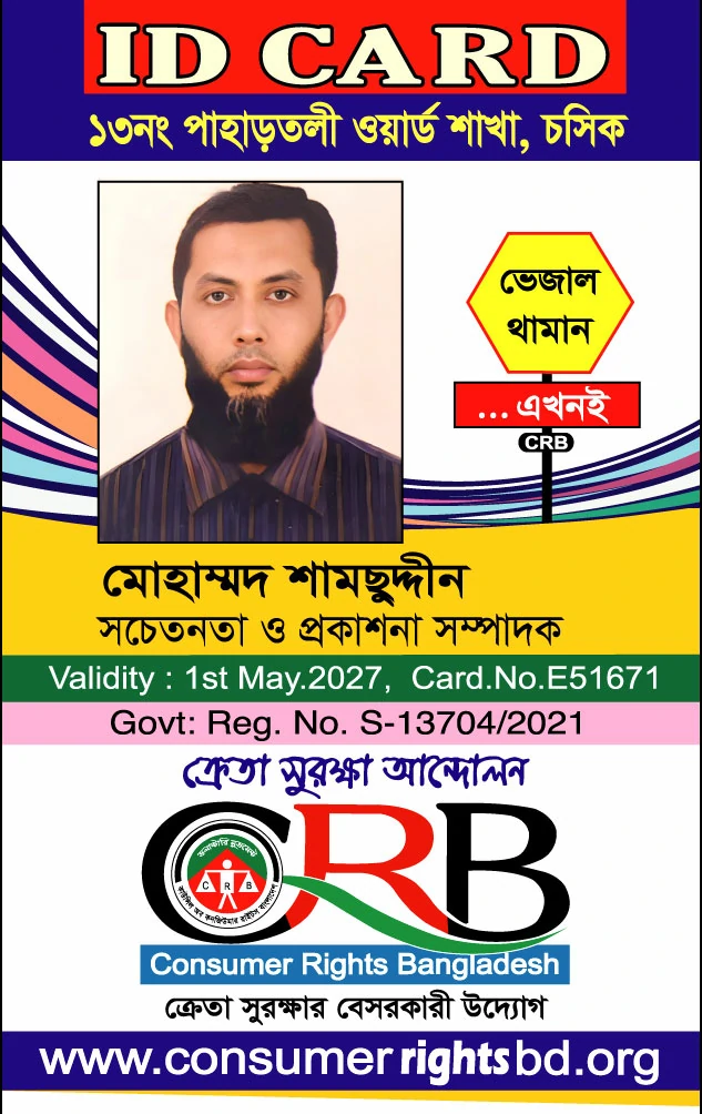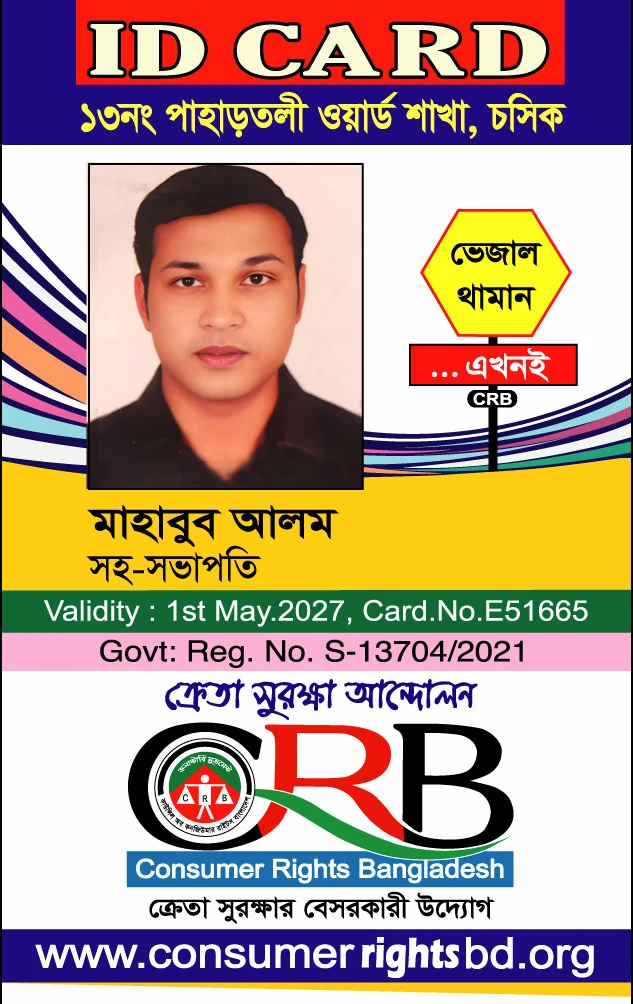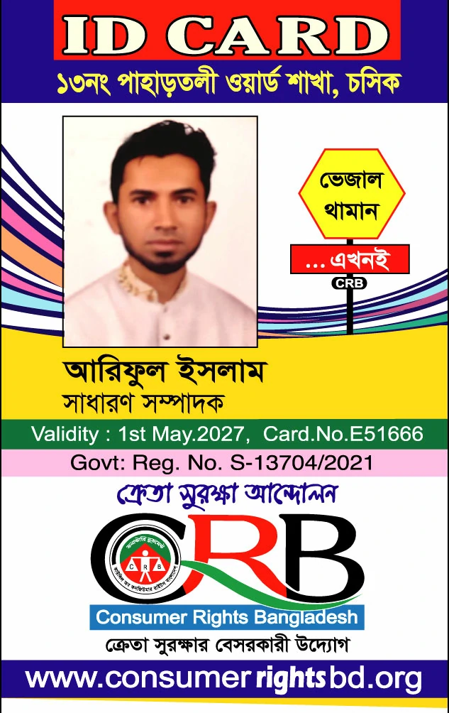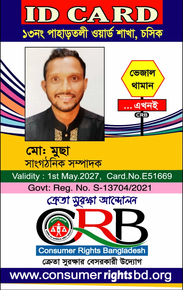 সিআরবি ১৩ নং পাহাড়তলী ওয়ার্ড  শাখা সদস্যদের আইডি কার্ডের তথ্য