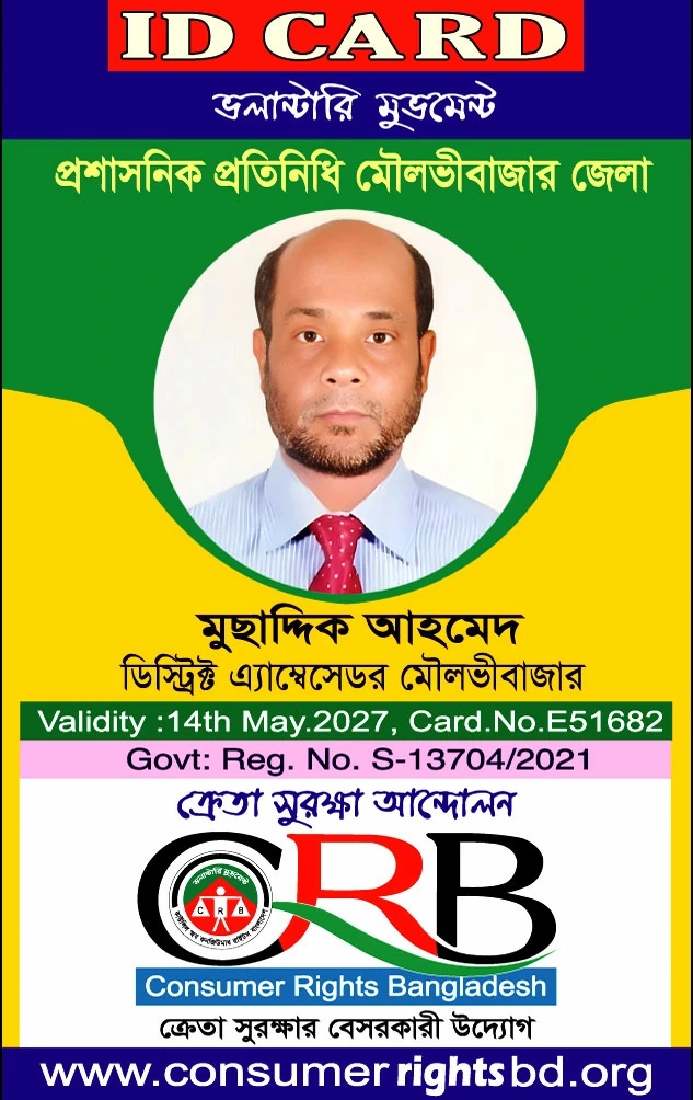 মৌলভীবাজার ডিস্ট্রিক এ্যাম্বেসেডরের আইডি কার্ডের তথ্য