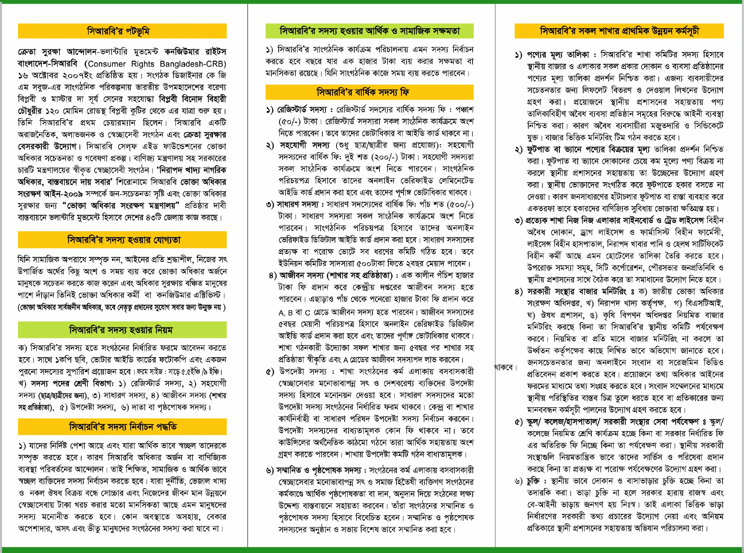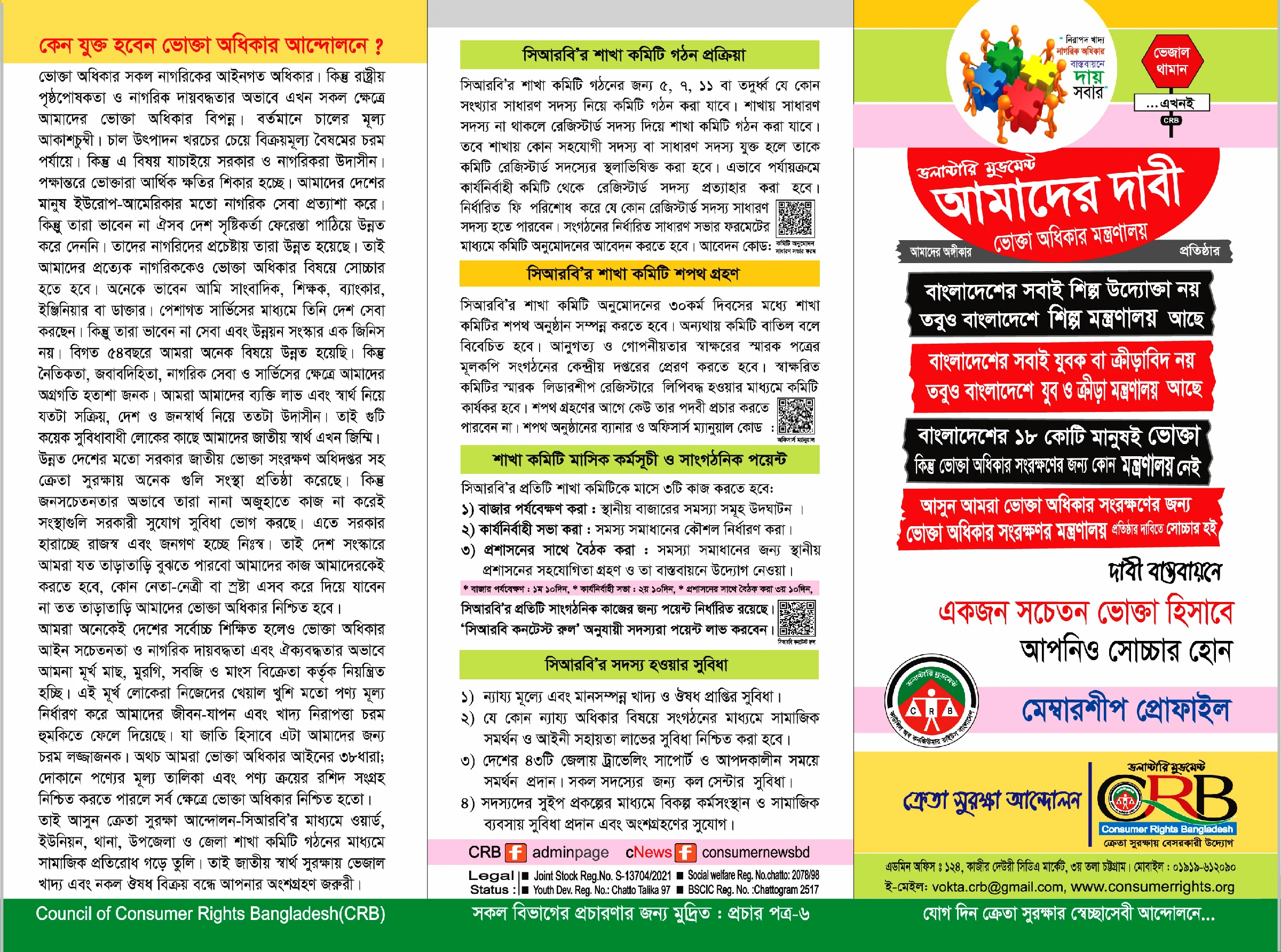 ক্রেতা সুরক্ষা আন্দোলন-সিআরবি’র সকল শাখার জন্য প্রযোজ্য